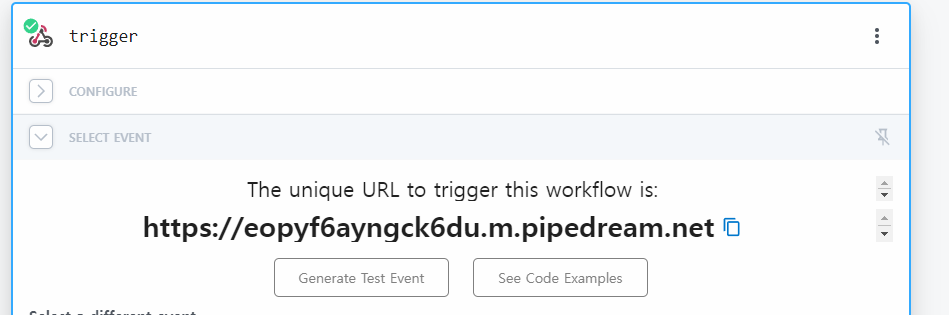 7. 외부서비스에는 requestbin의 select event단계에서 생성한 unique url을 넣어주고 포스트맨에서 웹훅 요청해봄