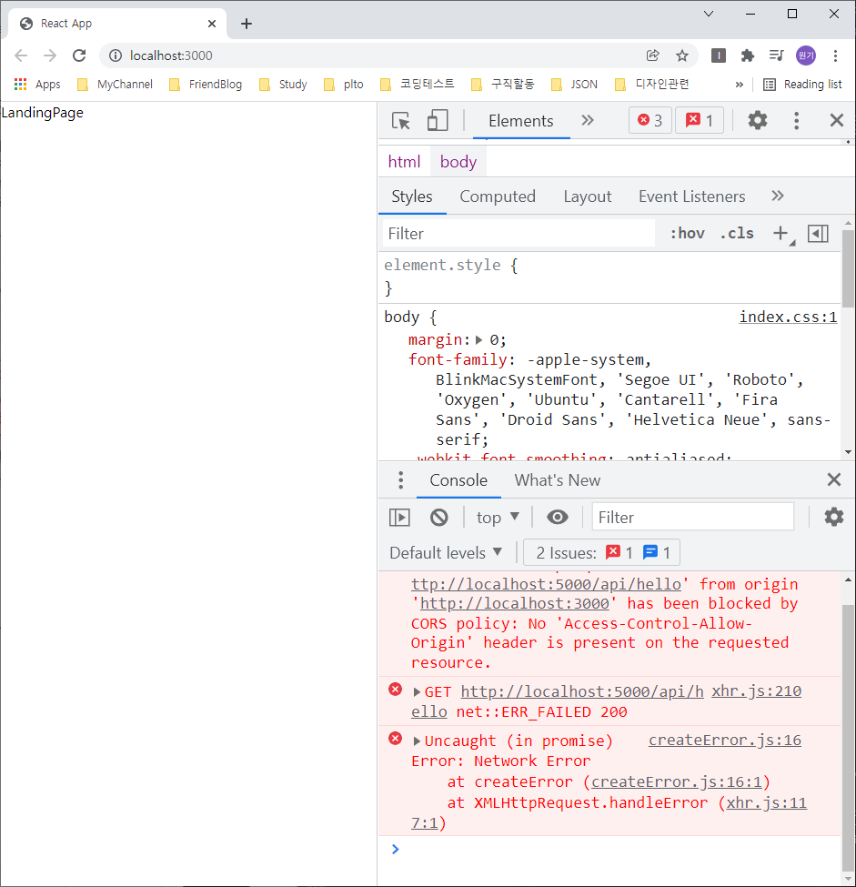 프록시 설정을 했기 때문에 랜딩페이지에서 axios부분에 http://localhost:5000은 지워줍니다!