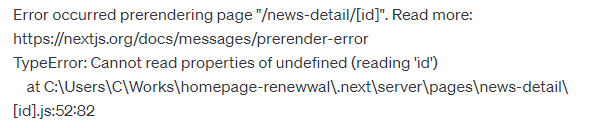 그러나 서버사이드에서는 특정 dynamic route로 이동했을 때의 데이터를 pre-rendering을 해야하는데 이것을 해주지 않아서 생긴 이슈였다!서버사이드에서는 param에 있는 값을 이용해서 업데이트를 해야 하는데, 이때 필요한 것이 getStaticPaths, getStaticProps이다.