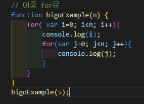 이전의 O(n²), O(n³) 을 생각하면 된다. 위의 예에서 결과값은 f(n) = n*5n 이다. 내부 loop에 의해 5n번 실행되고 내부loop는 외부 loop에 의해 n번 실행되기 때문이다.