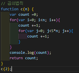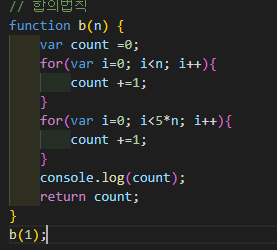 위의 예에서 첫번째 for문은 f(n)=n에 해당하고, 일곱번째 줄은 f(n)=5n애 해당한다.