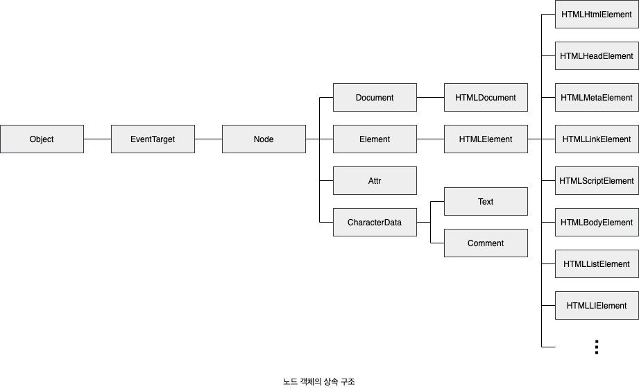 노드 객체는 Object, EventTarget, Node 인터페이스를 상속받는다.