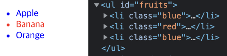 // class 값이 'fruit'인 요소 노드를 모두 탐색하여 HTMLCollection 객체에 담아 반환한다.