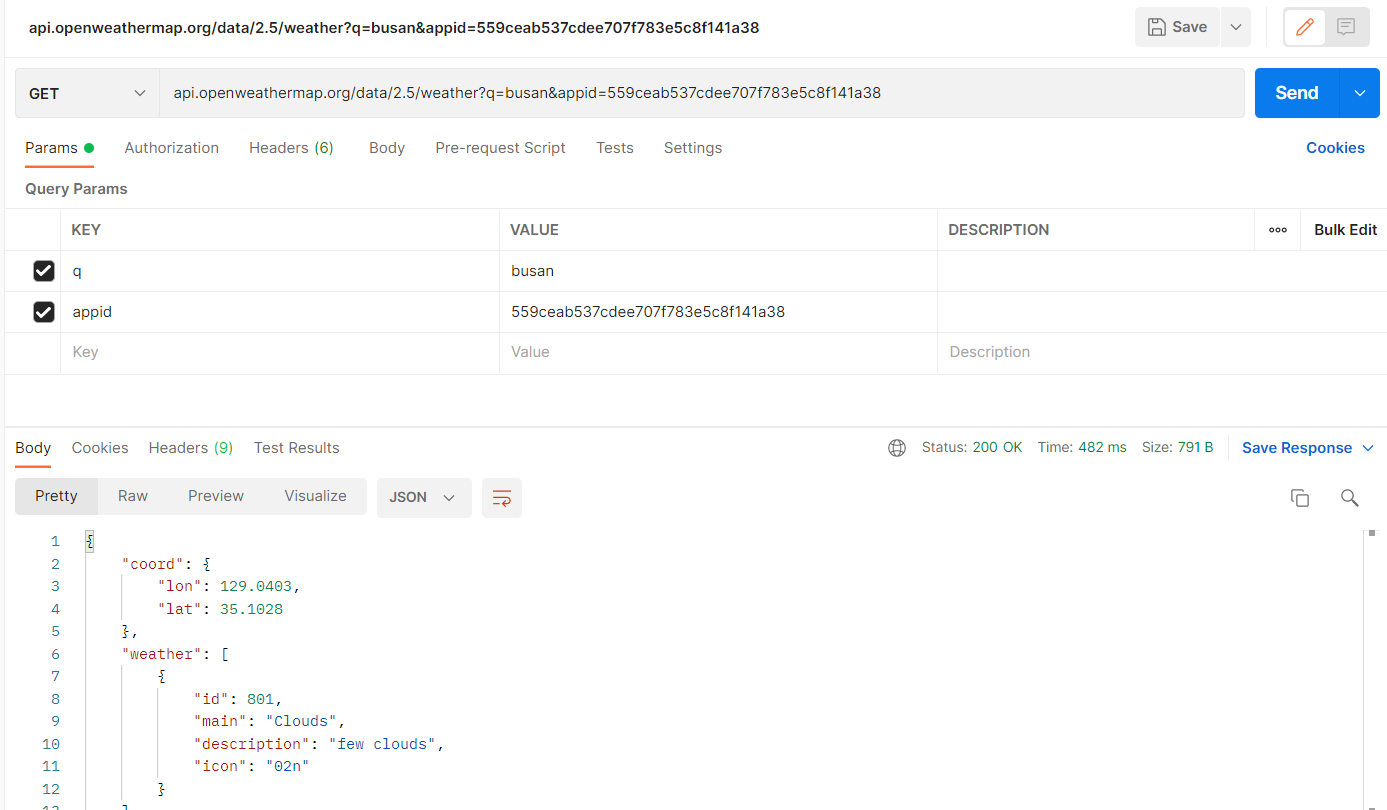 날씨어플리케이션(2) - Postman을 이용하여 api 연동 테스트