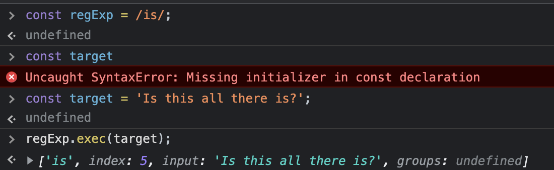 정규 표현식의 패턴에 문자 또는 문자열을 지정하면 검색 대상 문자열에서 패턴으로 지정한 문자 또는 문자열을 검색한다.